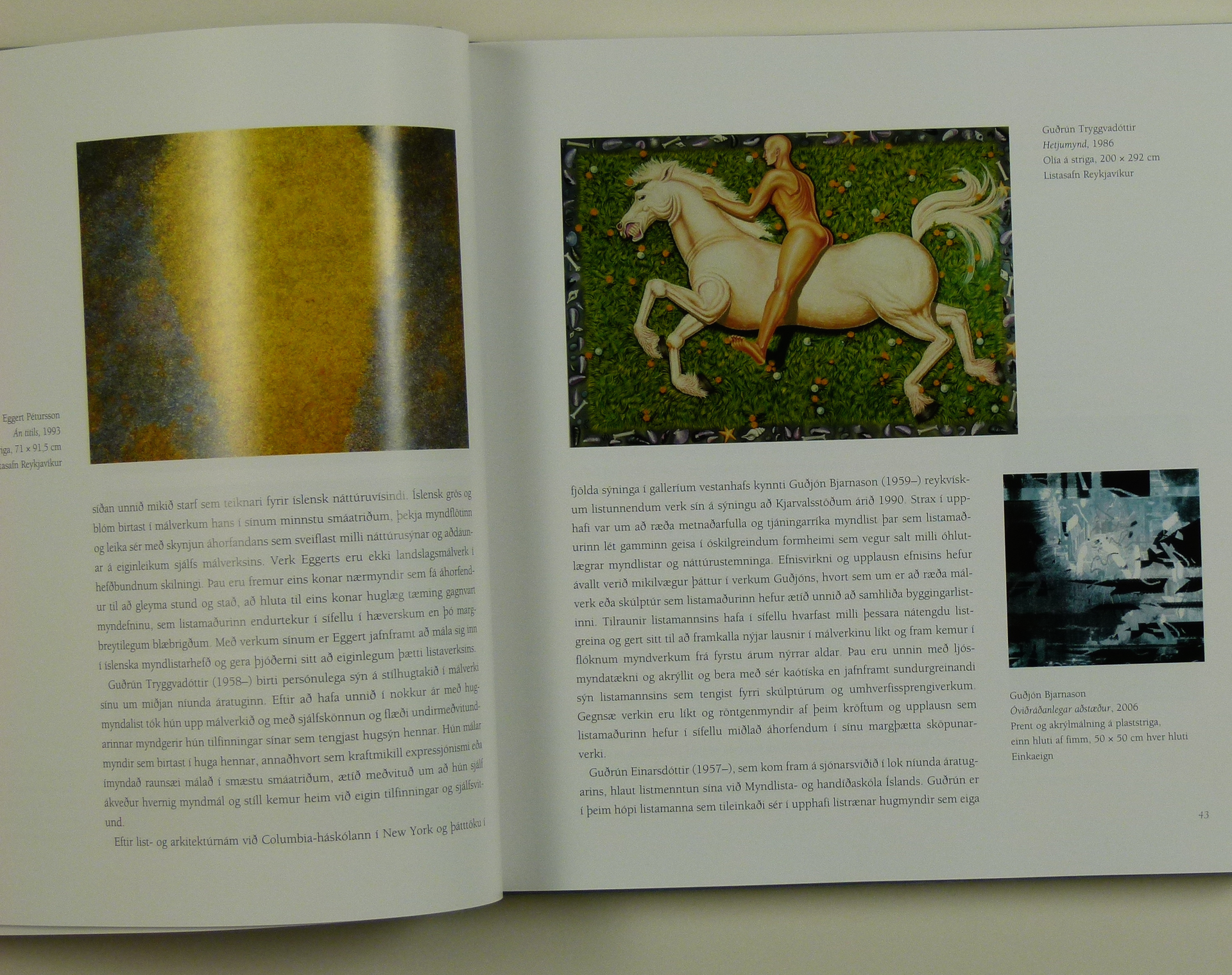Verkið á vinstri síðu er eftir Eggert Pétursson og verkið t.h. við Hetjumynd Guðrúnar er eftir Guðjón Bjarnason.