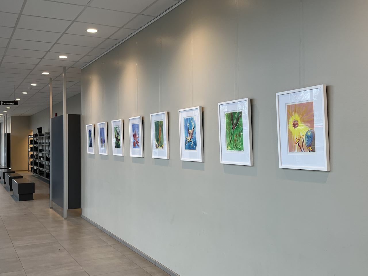 Í norðurgangi Sundhallar Selfoss stendur nú yfir sýning á átta vatnslitamyndum sem eru hluti hugmyndavinnu fyrir verkið „Kafarann“ sem Guðrún hefur nú gefið sveitarfélaginu Árborg til uppsetningar í suðurgangi sundlaugarbyggingarinnar.