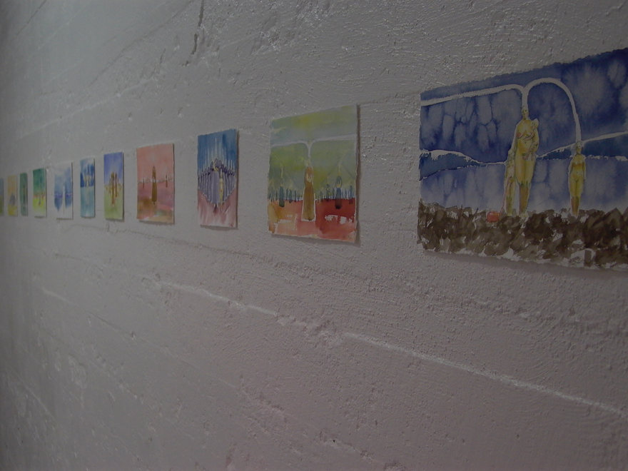 Vatnslitaskissur Guðrúnar í kringum þemað ættartengsl og kynslóðaskipti. Sýnt í austursal Galdrasafnsins á Ströndum.