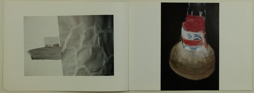 Á vinstri blaðsíðu: Siglt heim. Akríl, dagblöð og bréflímband á pappa, 300x180cm. 1982.