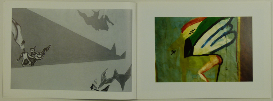 Á hægri blaðsíðu: Vængjuð manngeit og klaufar. Akríl á pappa, 50x70 cm. 1982.