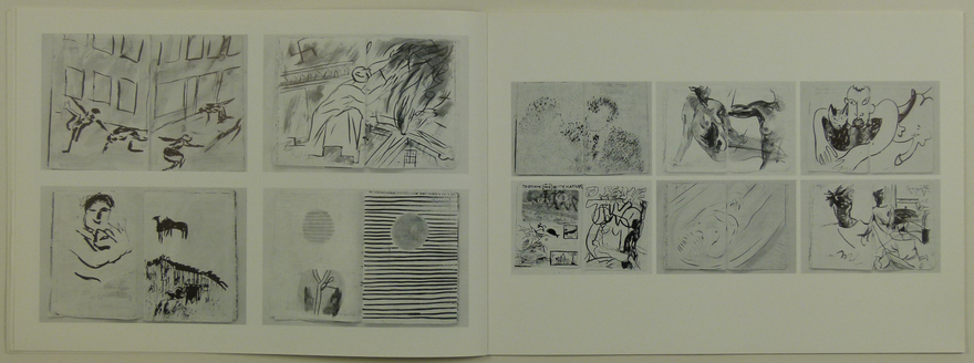 Þessar myndir í bæklingnum eru svart/hvítar og verkin eru að mestu leiti svart/hvít svo það kemur ekki að sök.