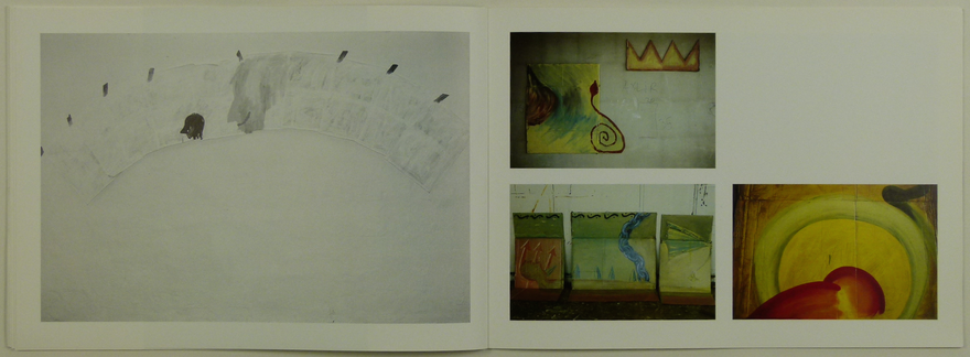 Myndi á vinstri síðu í bæklingnum er svart/hvít en verkið er þó í lit.