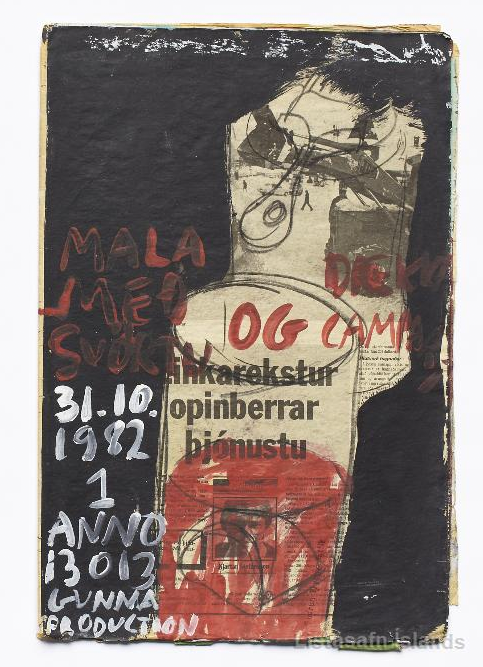 Bókverkið Mála með svörtu og drekk Campari er málverk unnið á dagblað. Verkið er 28 blaðsíður, unnið á Morgunblaðið frá miðvikudeginum 20. október 1982 og DV frá þriðjudeginum 19. október 1982. Dagblaðið er notað sem efnisflötur og myndefni verksins. Titillinn Mála með svörtu og drekk camparí er málaður á framhlið bókverksins. Bókverkið er áritað af höfundi með stimpli og málaðri dagsetningunni 31.10.1982 á framhlið verksins.