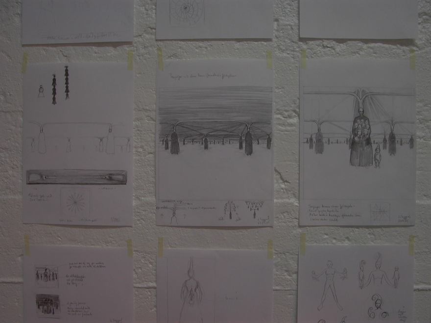 Skissur og teikningar Guðrúnar í kringum þemað ættartengsl og kynslóðaskipti. Sýnt í austursal Galdrasafnsins á Ströndum.
