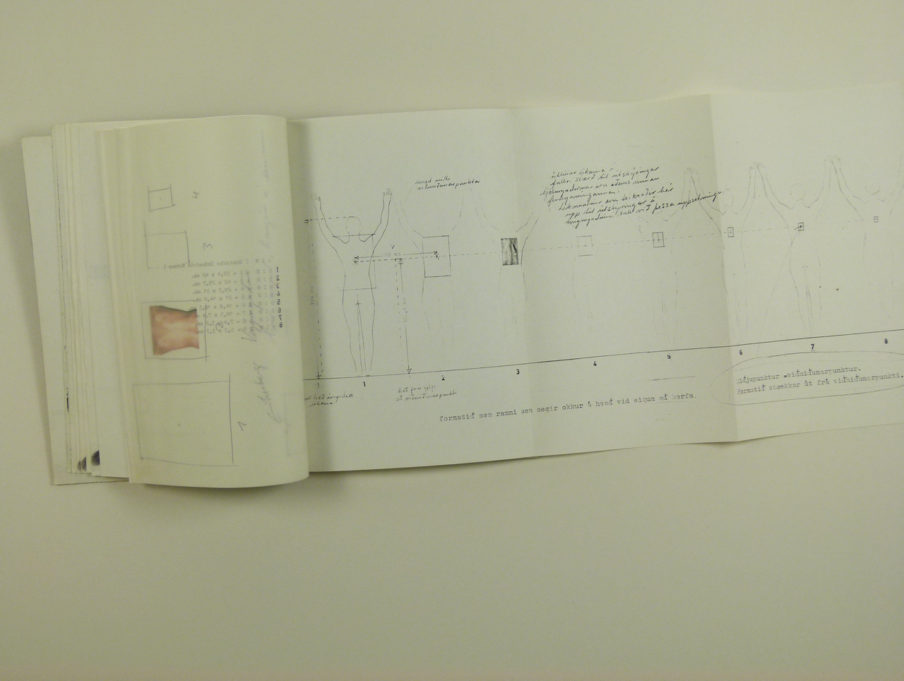 The work on birthmarks and DIN formats consists of full size photos of Guðrún, cut into the DIN (Deutsche Industrie Normen) formats where her birthmarks play a significant role as important points or scientific subjects, which puts human decisions on agendas, many which don't matter at all or are at least of questionable importance and value, in a new and humorous light. The subject, the human being, is here forced into the formats she puts everything else in, that is the DIN formats.