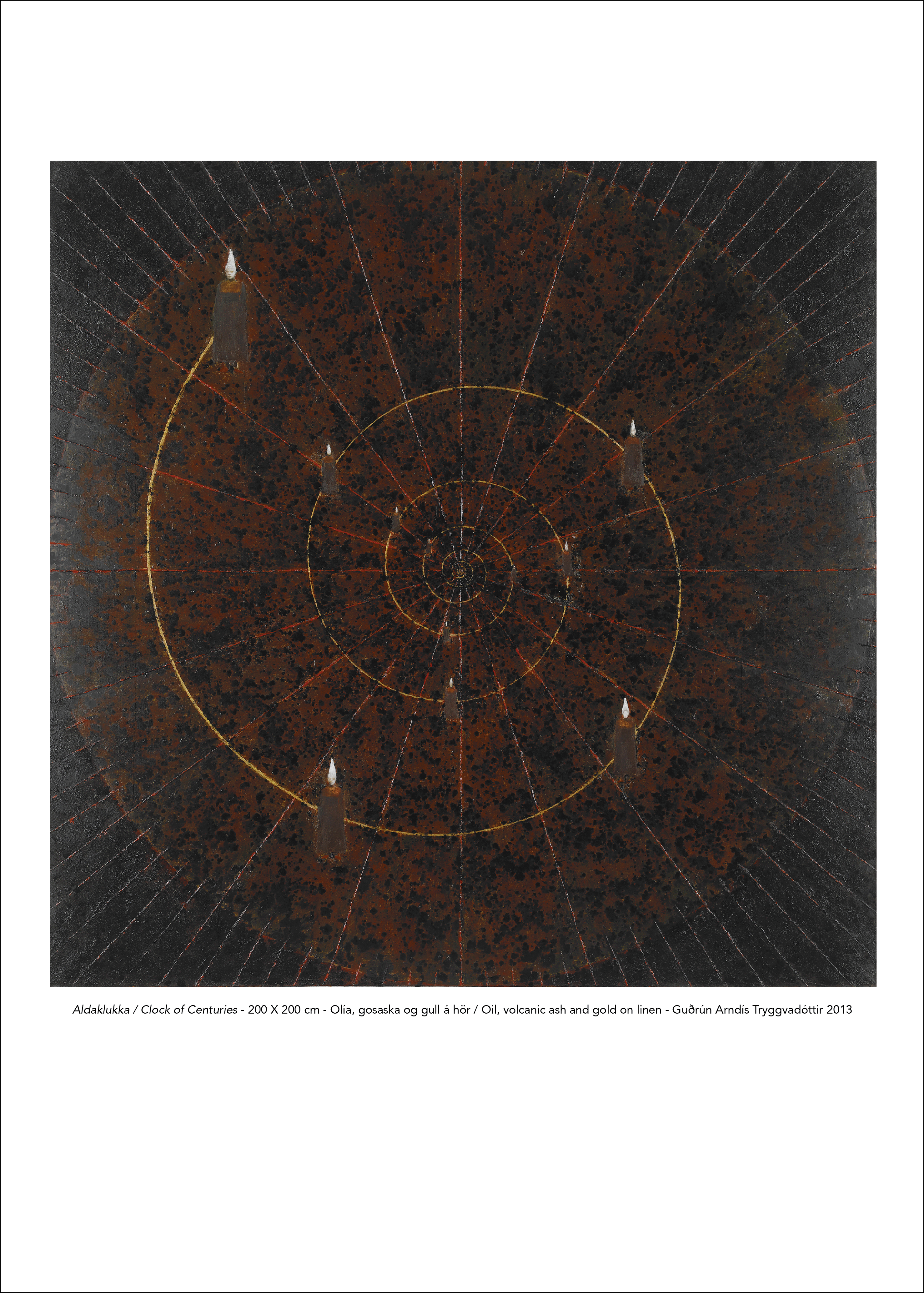 Aldaklukkan er myndræn framsetning tímans og tilraun til að sýna endurnýjun kynslóðanna í beinan kvenlegg. Formið er klukka, hver hringur er ein öld og einstaklingar kvenleggsins staðsettir á fæðingarári sínu svo langt sem heimildir ná eða aftur til ársins 1685. Næst okkur í tíma er dóttir mín fædd 1988, svo ég 1958, þá móðir mín 1938 og svo koll af kolli aftur og aftur um aldir. Að jafnaði þrjár kynslóðir á öld.